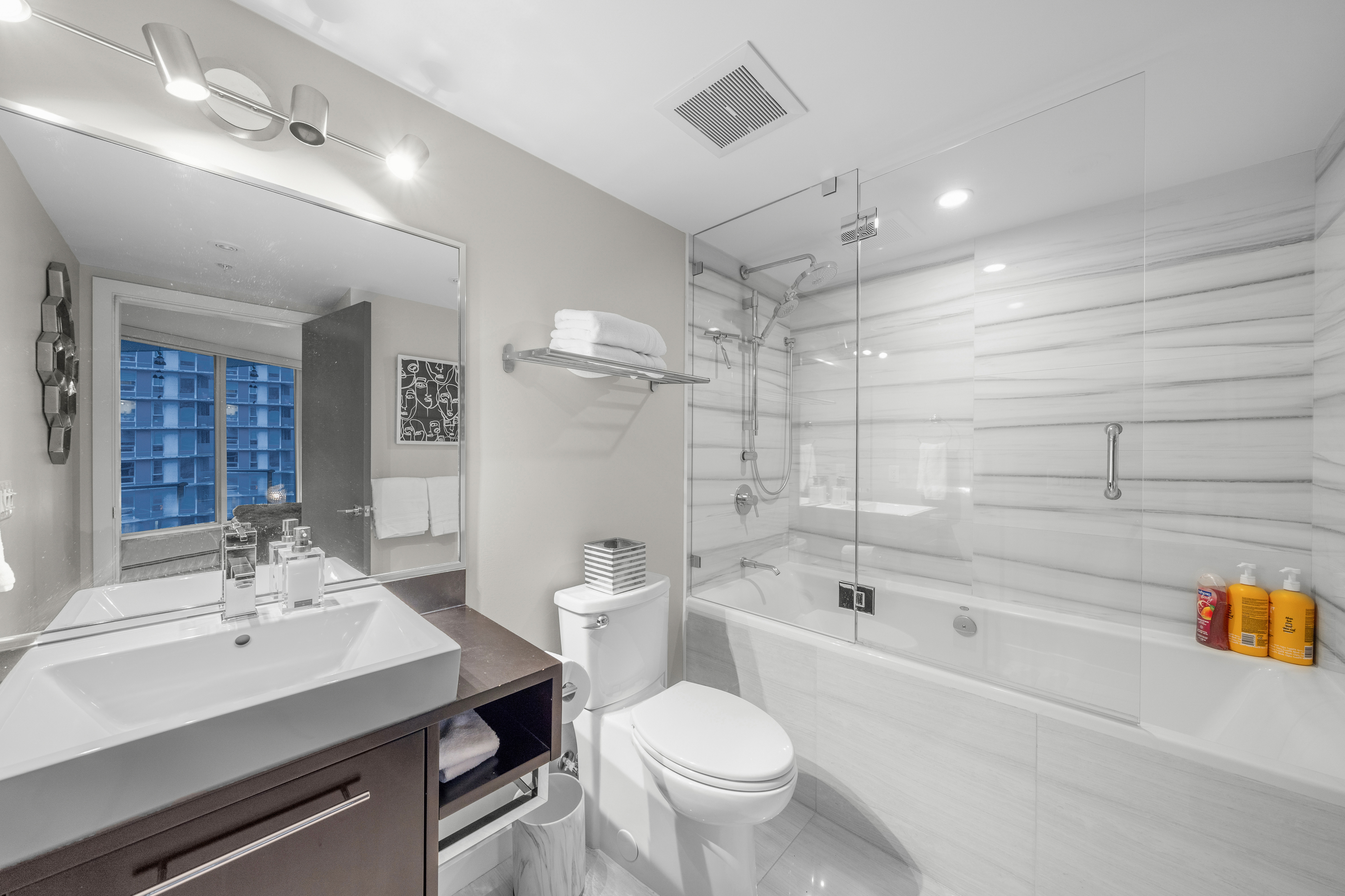 This luxury condo is located in-between Gastown and Yaletown. My home has been renovated and can accommodate 5 adults guests. My primary bedroom has a King size bed with an ensuite. My second bedroom has a queen bed and I have a twin fold out bed with all the bedding in the living room. Amenities to this unit are ideal. There are two major grocery stories just minutes from the condo. Costco being one and TNT being the other. Five star restaurants and coffee bars are also within walking distance. If you would like to do some touring then hop onto the Aqua bus. Going to Grandville Island is a breeze. You can also take a bike ride around the sea wall and enjoy the ocean and Stanley Park. This condo is close to just about anything that you would like to do, whether that be shopping, sightseeing or just relaxing in a coffee bar. Registration Number - 25-156499